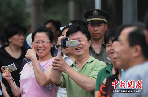 6月8日下午,2010年全国高考北京地区结束考试,在首都师范大学第二附属中学考点外等候考生的家长们也在逐渐放松紧绷的神经。中新社发 侯宇 摄
