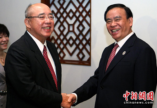 6月9日下午,浙江省长吕祖善在台湾圆山酒店与中国国民党荣誉主席吴伯雄举行会谈。中新社记者 宋吉河 摄