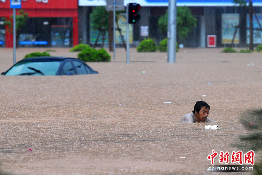 6月9日,广西重点防洪城市梧州遭遇了四年来最严重的一次内涝,导致梧州新兴二路两广市场加油站附近路段交通全部瘫痪。在两广市场附近,多辆汽车被困于水中。