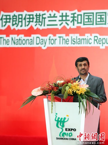 6月11日,伊朗总统艾哈迈迪·内贾德在上海世博园出席伊朗国家馆日活动并致辞。中新社发 汤彦俊 摄