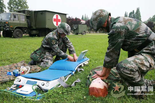 6月10日,济南军区某装甲师师医院组织了一场信息化条件下的野战卫勤演练,他们按照实兵实装实战要求从难从严组织野战手术车及车载设备、野战X线诊断车的展开与撤收、担架式心肺复苏机的操作使用以及战场救护等课目演练,积极探索信息下条件下战伤救治的特点与规律,确保野战医疗所“拉得出、跟得上、展得开、治得好。”(郭纯树、陈新文 摄)