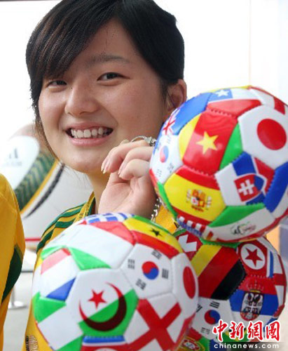 世博南非馆将“足球”作为礼物招揽游客,吸引了众多球迷。中新社发 汤彦俊 摄