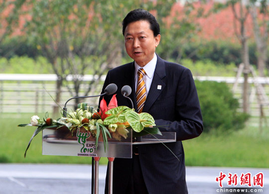 图:鸠山参加上海世博会日本国家馆日活动(2)