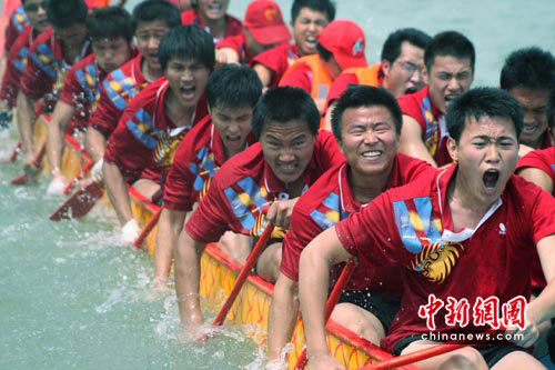 中国传统的端午节前夕,首届海峡两岸龙舟邀请赛6月12日在当年中华民族的扬威之地——山东省枣庄市台儿庄的京杭古运河上举行,来自台湾和浙江、江苏、山东等祖国大陆的13支代表队以及由美国、法国、波兰等11个国家选手组成的国际友人代表队的366名选手参加了比赛。