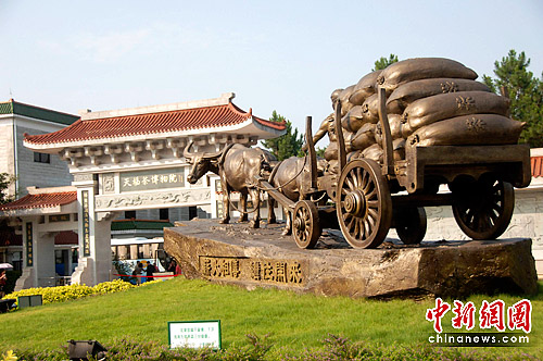 象征着具有悠久传统的中国茶业薪火相传,继往开来的雕塑树立茶博物馆门口。王东明 摄