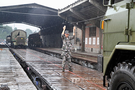 图:广空高炮某团在暴雨中进行装备铁路装载(2)