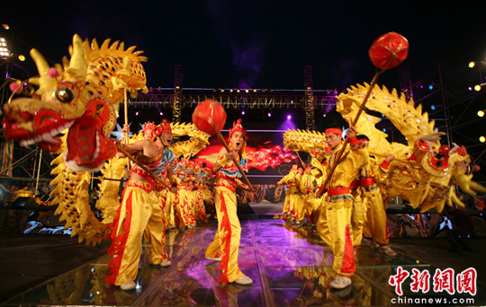 中新网成都6月14日电 (徐杨祎 刘忠俊)呼呼生风的彩龙、绚烂的舞台灯光,游客们随着激情动感的音乐节奏摇曳身姿。14日晚,成都黄龙溪古镇国际香囊节隆重拉开序幕。“最川西、最国际”的双流黄龙溪古镇也迎来了端午小长假的首个旅游小高峰。