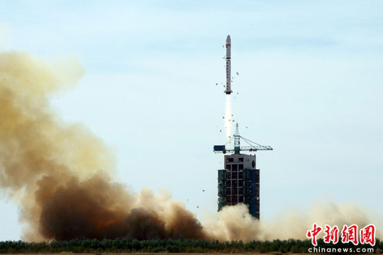 北京时间6月15日9时39分,中国在酒泉卫星发射中心用“长征二号丁”运载火箭,将“实践十二号卫星”成功送入太空。梁杰 刘辉 摄