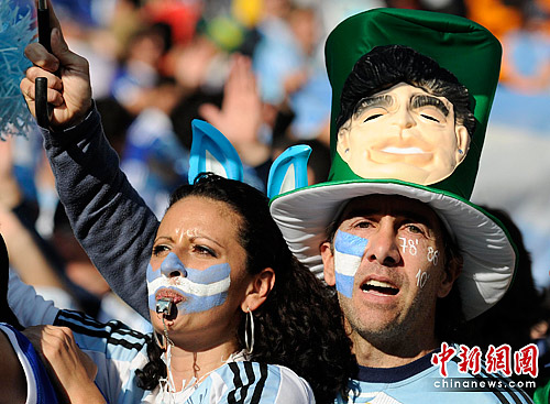 南非世界杯:头顶马拉多纳的阿根廷球迷