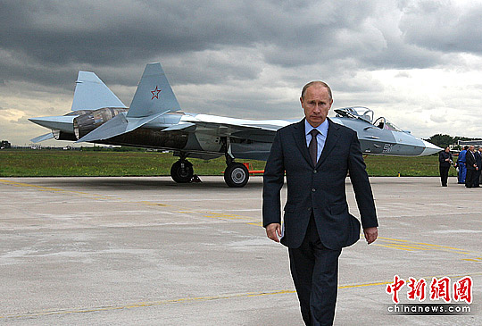 图为俄罗斯总理普京参观完T-50后准备离开机场。