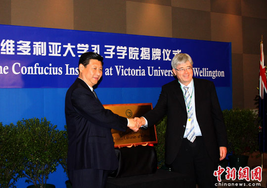 当地时间19日上午,正在新西兰首都惠灵顿访问的中国国家副主席习近平出席了厦门大学与维多利亚大学共同成立孔子学院揭牌仪式。