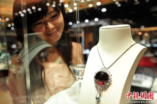 图:模特展示华美碧玺精品(4)