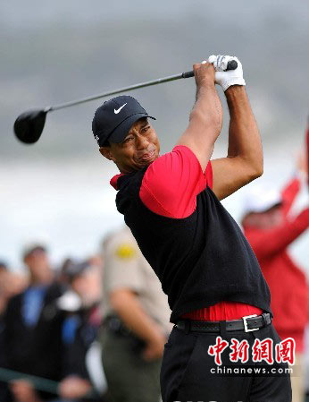 当地时间6月20日,第110届美国高尔夫球公开赛在加州圆石滩高尔夫球场落幕,一度受到绯闻困扰的泰格·伍兹频频出错,打出75杆,以总成绩287杆并列总成绩第四。中新社发 张炜 摄