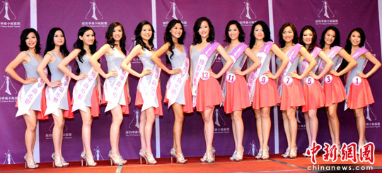 由纽约华裔小姐选美会主办的这项活动已进入第9年,100多位报名参赛的佳丽中竞选出13位进入决赛。来自美国纽约、加利福尼亚、维吉尼亚、马萨诸赛和密歇根6个州的佳丽均为在校生,年纪最小的17岁,最大的23岁。入围的13位佳丽即将投入三个月的紧张训练,以及在美国和加拿大开展的一系列亲善访问、拍摄、珠宝展示、才艺比赛等活动,最后将于8月21日进行决赛。中新社发 龚文谟 摄