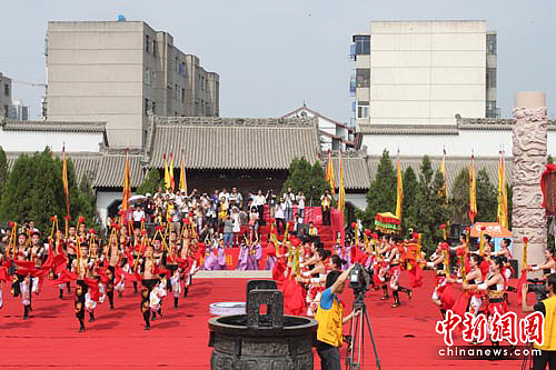 6月22日上午10时,来自日本、俄罗斯等国,以及中国内地、台湾、香港等地区的5000多名海内外人士云集甘肃天水集体拜祭中华人文始祖伏羲。