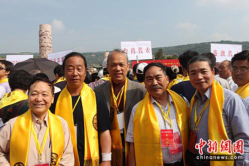 图为台湾参祭代表合影留念,左三为台北县新店市毫芒雕刻馆馆长陈逢显先生。张玉玺 摄