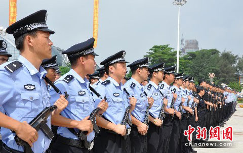 6月23日,广西南宁市市委、市政府在民族广场召开全市打黑除恶百日专项行动动员大会,南宁市多部门、多警种参加大会。中新社发 杨志雄 摄