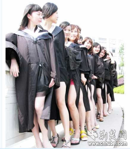 毕业拍照留念,是多数大学毕业生必备“动作”。昨日(22日),一组女大学生“露腿毕业照”在网上热传,引起网民热议。记者昨日多方求证得知,这组照片是武汉某著名高校大四女生所拍。