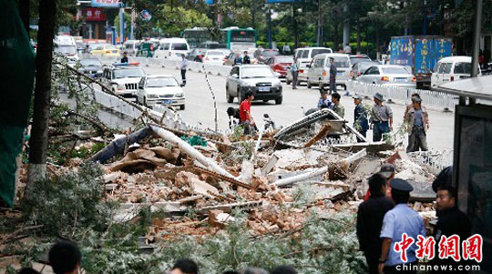图:昆明闹市区一在拆酒店发生倒塌事故(3)