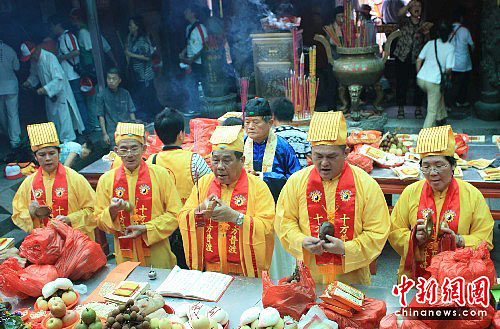 图为两岸关帝庙代表主祭。中新社发 谢汉杰 摄