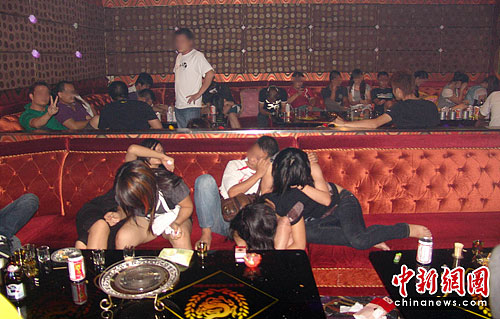 6月23日凌晨,广西南宁警方在一KTV娱乐城“总统”包厢内查获了涉嫌吸毒的60名男女。当夜,当地警方出动400多名警力,针对“黄、赌、毒”开展“亮剑”行动。