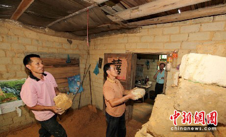 6月23日,广西融安县遭受洪水袭击的农民在水退后展开生产自救,该县政府组织干部党员深入到受灾最重的乡镇,帮助群众重建家园。图为该县受灾最重的雅瑶乡,党员干部帮助村民清理被洪水冲跨的房屋。中新社发 谭凯兴 摄