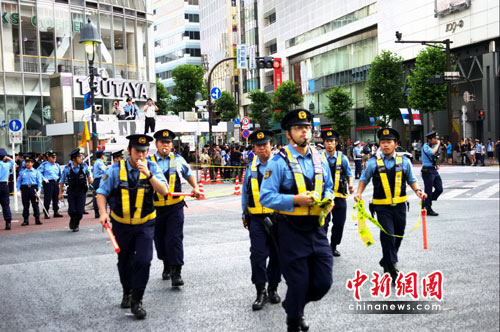 上千球迷涌向东京涩谷街头狂欢庆祝,导致交通堵塞,影响早高峰车辆通行。图为警察紧急出动疏散球迷。作 者:孙冉
