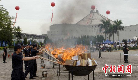 图:中国海关在虎门销毁成吨毒品(2)