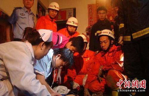 图为被困人员被救出,现场医务人员实施抢救。中新社发 朱晓航 摄