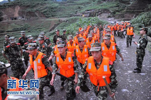部队官兵赶赴事故现场进行救援。 欧东衢 摄
