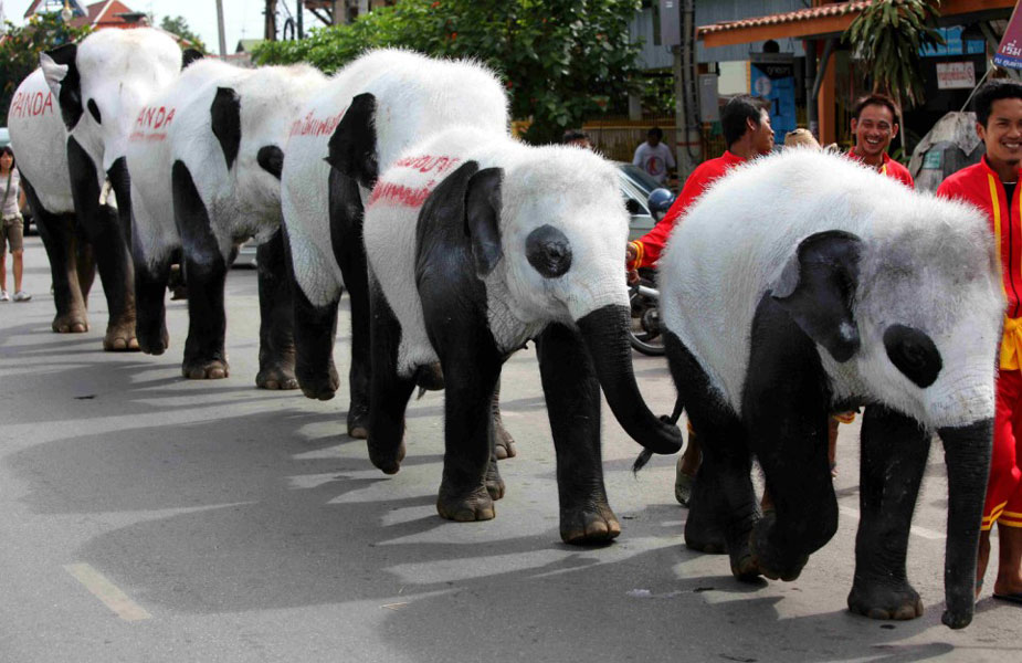 据英国媒体报道,近日,泰国因一只刚出生的熊猫陷入热潮,泰国还准备向公众征集熊猫幼崽的名字。几只大象也“妆扮”成熊猫的模样,借此吸引人们的关注。