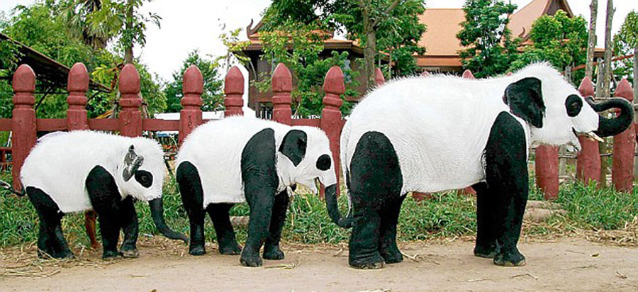泰国大象扮熊猫