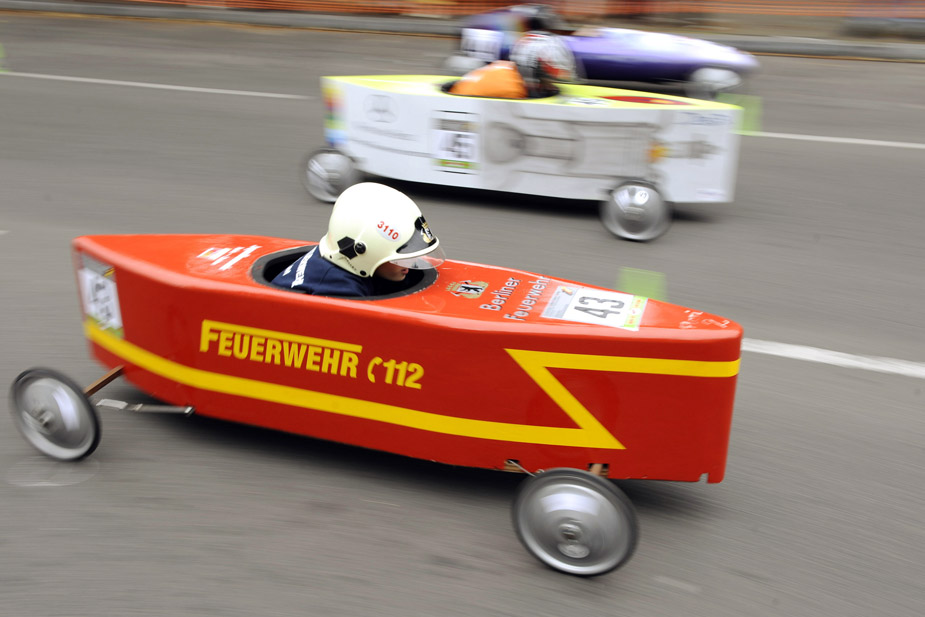 6月28日,德国柏林的德比郡举行了第50届“肥皂盒”竞速赛车,该赛车没有动力装置,参赛者亲手打造的“赛车”更使比赛妙趣横生。