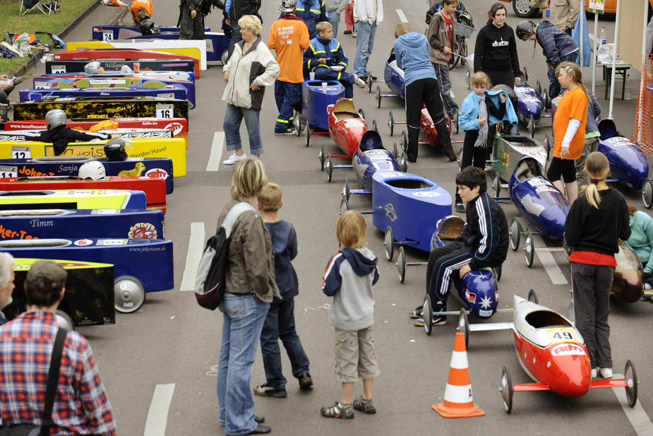 6月28日,德国柏林的德比郡举行了第50届“肥皂盒”竞速赛车,该赛车没有动力装置,参赛者亲手打造的“赛车”更使比赛妙趣横生。