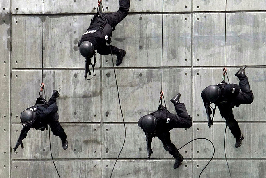 7月2日,韩国特警在韩国首都首尔市举行了反恐演习。韩国特警先后表演了一系列高难度动作,令人目不暇接。
