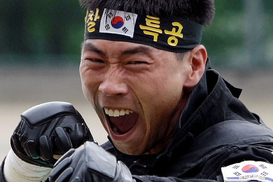 7月2日,韩国特警在韩国首都首尔市举行了反恐演习。韩国特警先后表演了一系列高难度动作,令人目不暇接。