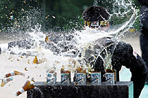 7月1日,美国芝加哥,西尔斯大厦在第103层瞭望台增设的玻璃阳台对媒体开放。这些玻璃阳台建在大厦西侧,从瞭望台向外延伸约1.2米。阳台的玻璃地板厚达12.7厘米,可承重约5吨。