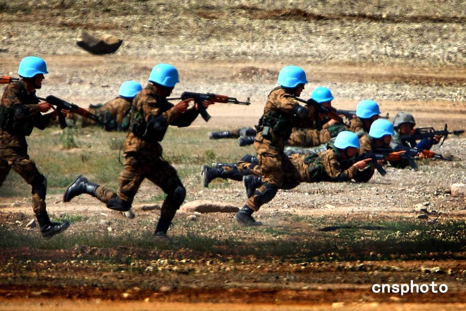7月3日,中国和蒙古首次举行维和联合军事训练,以执行联合国框架下维和任务为背景,在北京地区某训练场开展多种综合演练。中新社发 宋吉河 摄