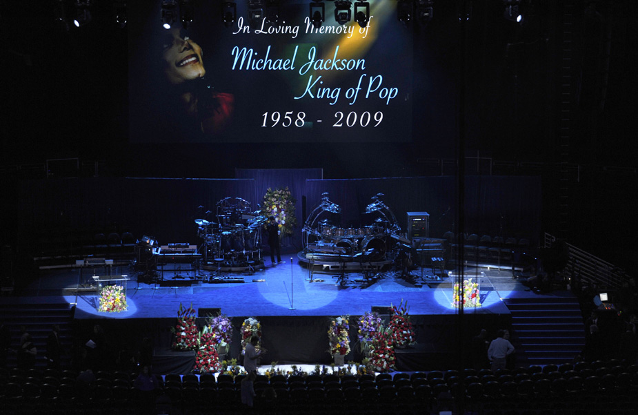 北京时间7月8日凌晨,迈克尔·杰克逊的公众追思会在美国洛杉矶的斯台普斯体育中心举行。>>更多报道