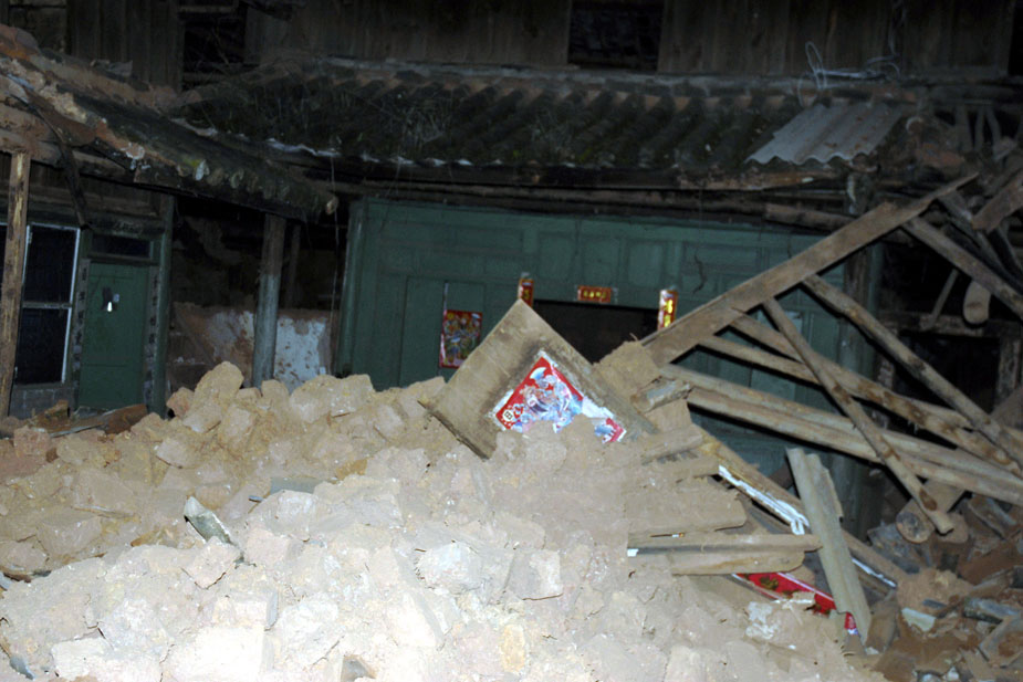 图为此次地震中受灾最为严重的官屯乡官屯村受损较为严重的民房。中新社发 保旭 摄