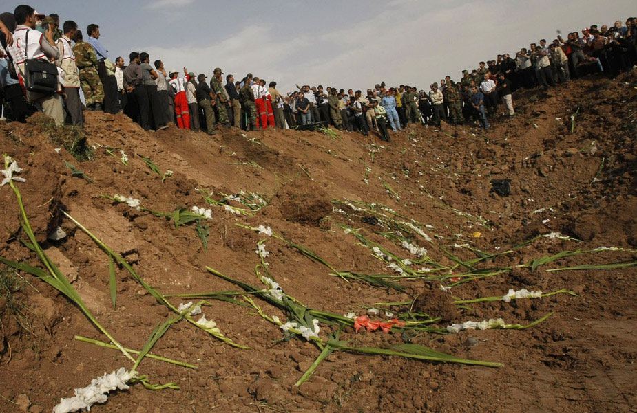 7月16日,部分遇难者的亲属在伊朗加兹温附近的坠机现场悼念亲人。一架伊朗客机15日在加兹温附近坠毁,机上168人全部遇难。更多报道