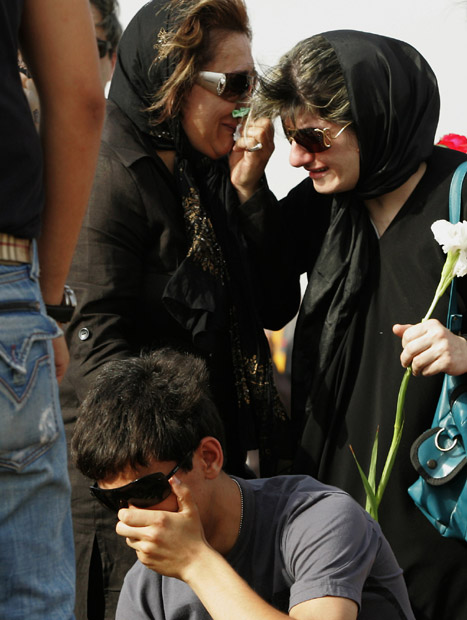 7月16日,部分遇难者的亲属在伊朗加兹温附近的坠机现场悼念亲人。一架伊朗客机15日在加兹温附近坠毁,机上168人全部遇难。更多报道