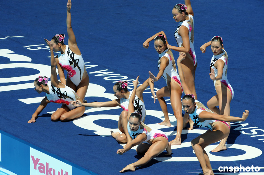 中国花游姑娘功夫动作亮相罗马世锦赛。中新社发 廖攀 摄