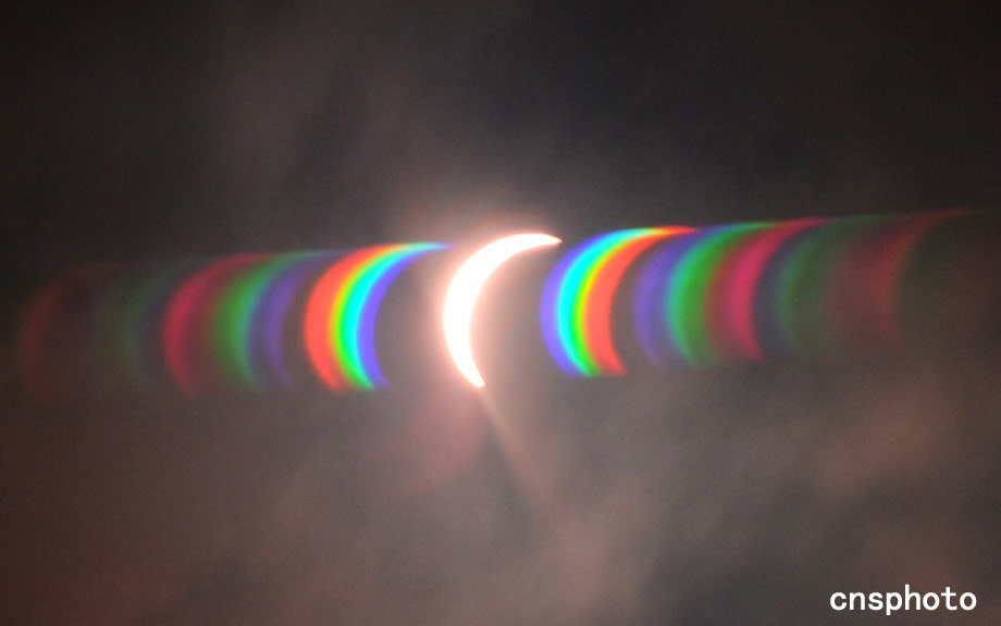 7月22日9时左右,江苏连云港市上空出现日偏食奇观。