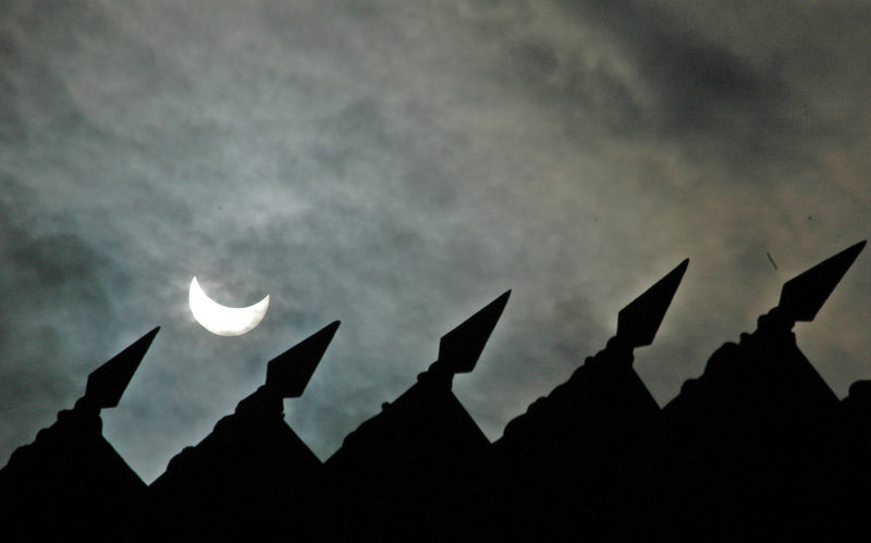 7月22日上午,日全食在武汉剧院上空出现。 金木易/CFP