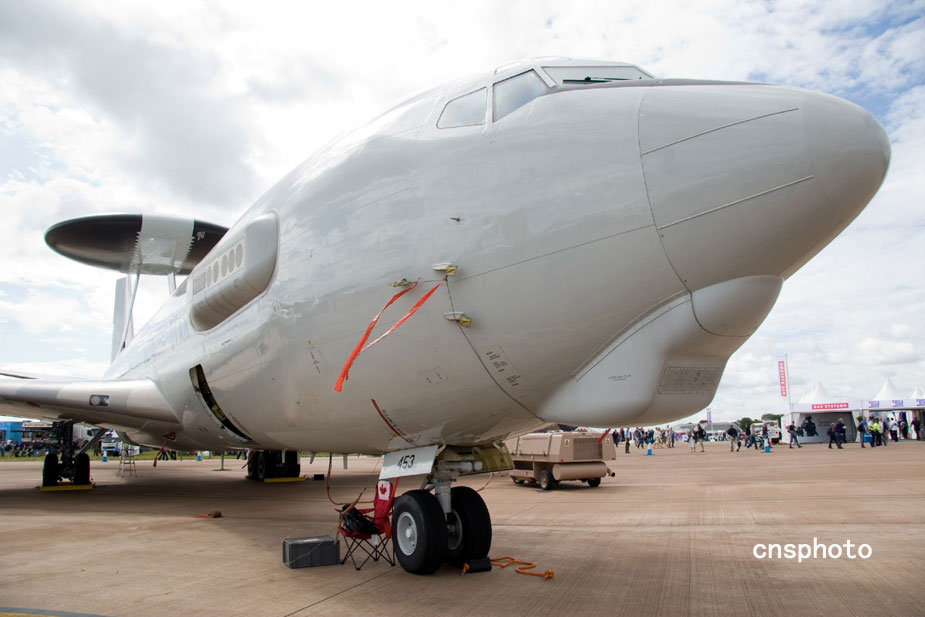 2009年7月,“2009英国费尔福德航展”在英格兰费尔福德开展。图为北约驻卢森堡的E-3A预警机在此次航展上亮相。中新社发 潘禹 摄