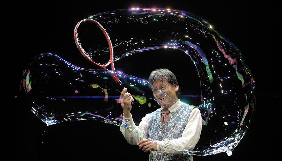 当地时间7月23日,西班牙国际肥皂泡艺术家皮蓬-玻尔在巴塞罗那进行肥皂泡艺术表演。