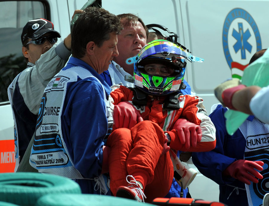 当地时间25日,F1大奖赛匈牙利站的排位赛在亨格罗林赛道举行。法拉利车队的巴西车手马萨的赛车在第二节冲出赛道并撞上轮胎墙,马萨受伤后被直升机送往布达佩斯的国防医院接受治疗。据报道称,虽然他的伤势严重,但并无生命危险。