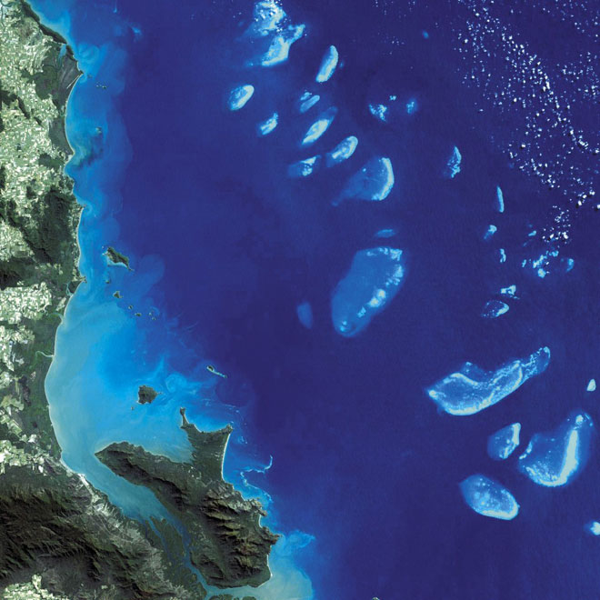 英国媒体近日公布了一组卫星上拍摄到的地球自然景观的照片,领观者颇感震撼。图为从卫星上拍到的大堡礁。