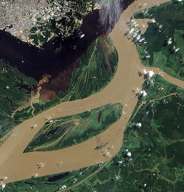 英国媒体近日公布了一组卫星上拍摄到的地球自然景观的照片,领观者颇感震撼。图为从卫星上拍到的洪水。